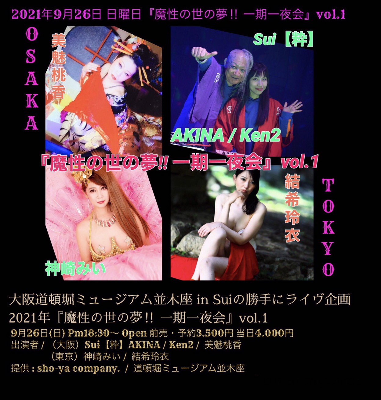 「妄想・点時空間」 Wネーム 点時界 てんじかい(R18展示会) 妄想映像作家 / ken2 & カメラマン / 仲宗根 美幸 仲宗根カメラマン作品展示 & ken2 点組作品上映 会場: 道頓堀「並木座」