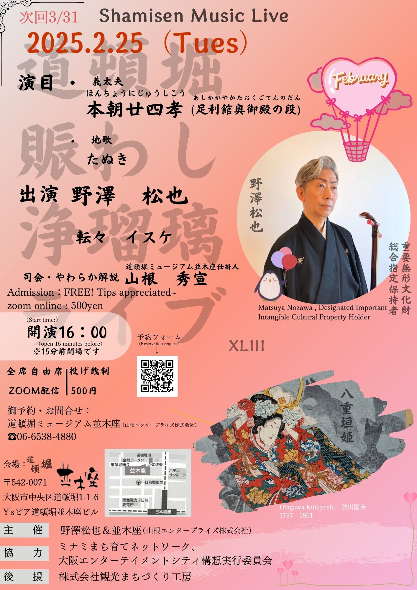 道頓堀賑わしLIVE 第52回 道頓堀賑わし浄瑠璃ライブ 11月は火曜日! 11/25(火)25th.November 16:00開演(15分前開場)
