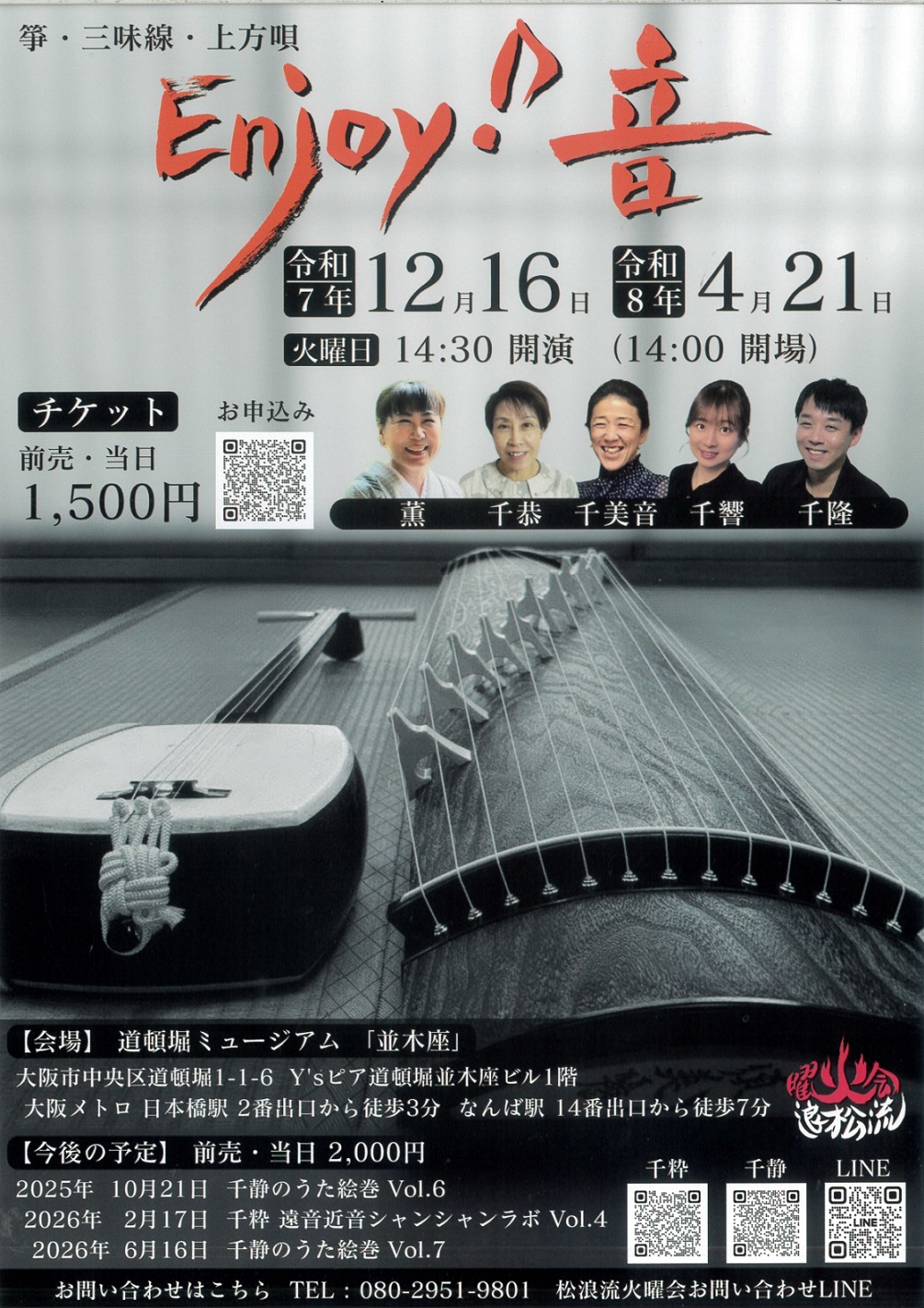 | 恒例 松浪火曜会 千静さんpresents! 箏・三味線・上方唄 Enjoy♪ 音 12/16(火)