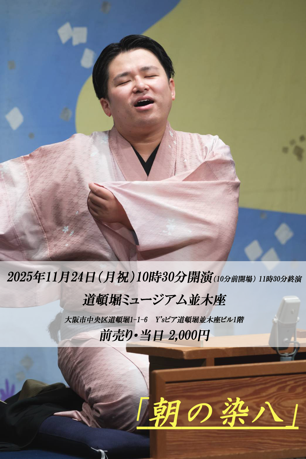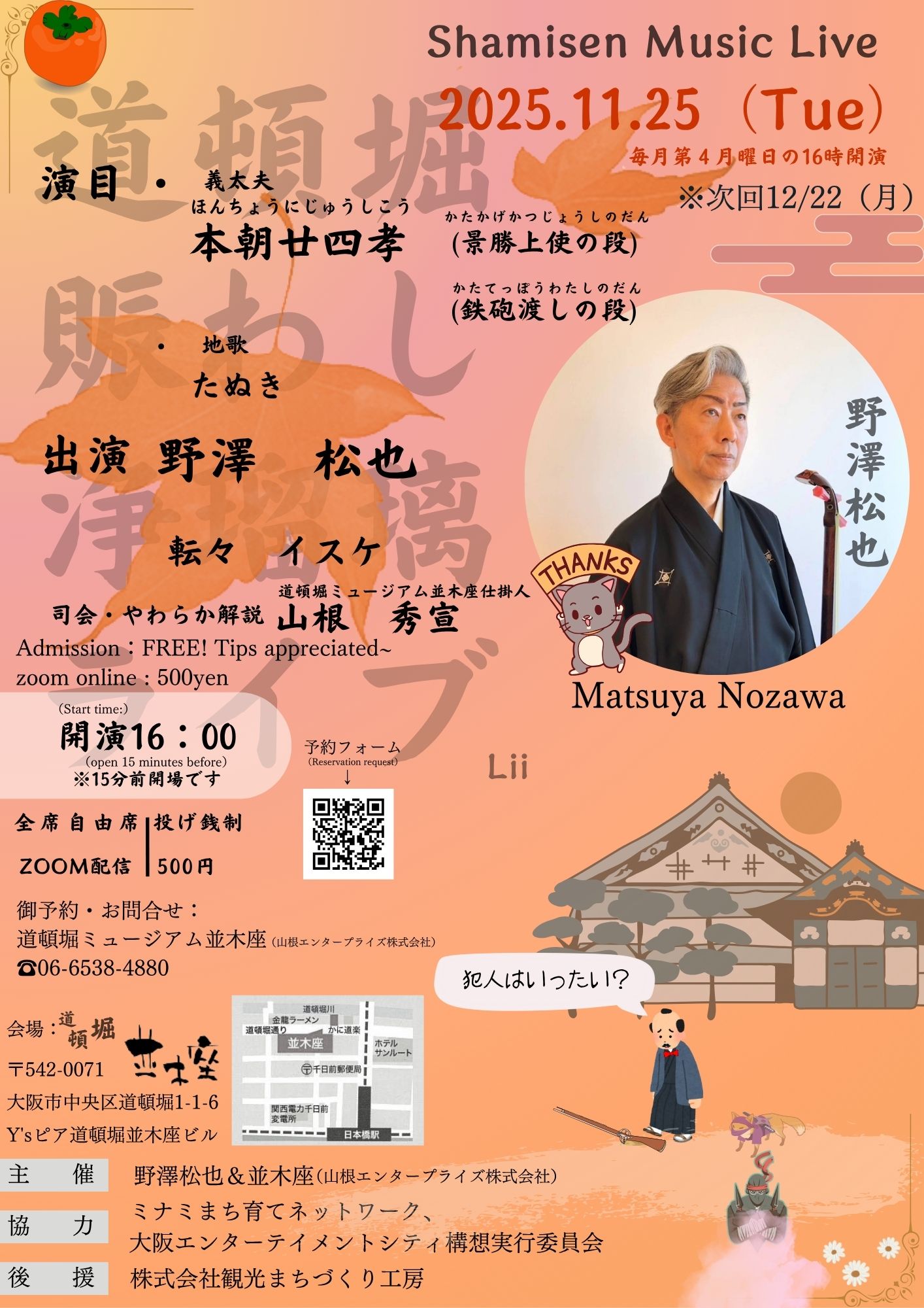 道頓堀賑わしLIVE 第52回 道頓堀賑わし浄瑠璃ライブ 11月は火曜日! 11/25(火)25th.November 16:00開演(15分前開場)